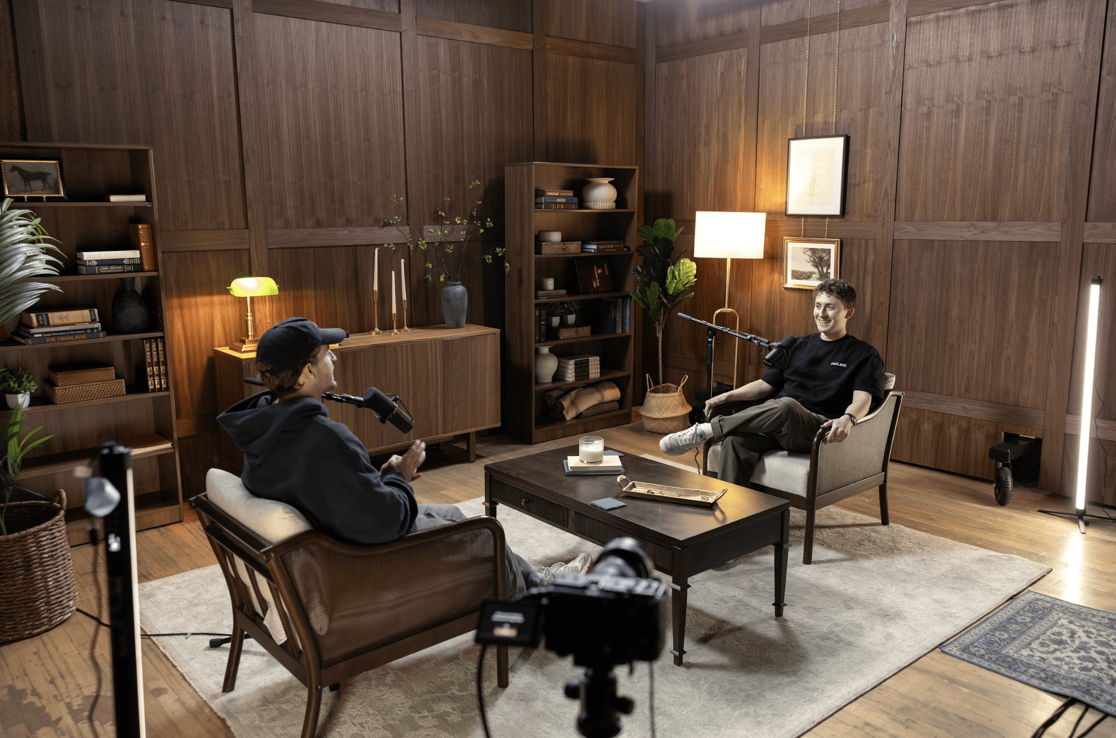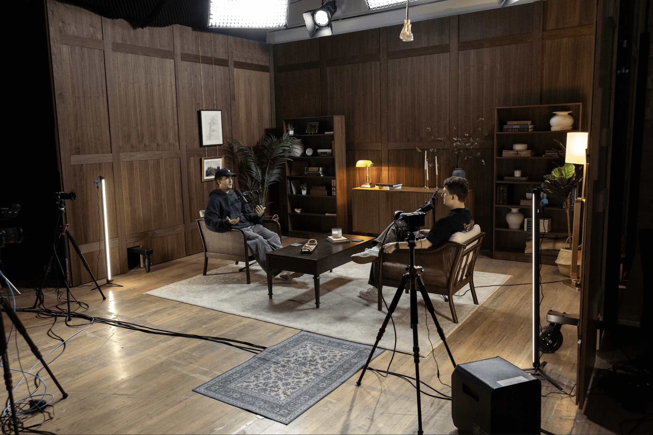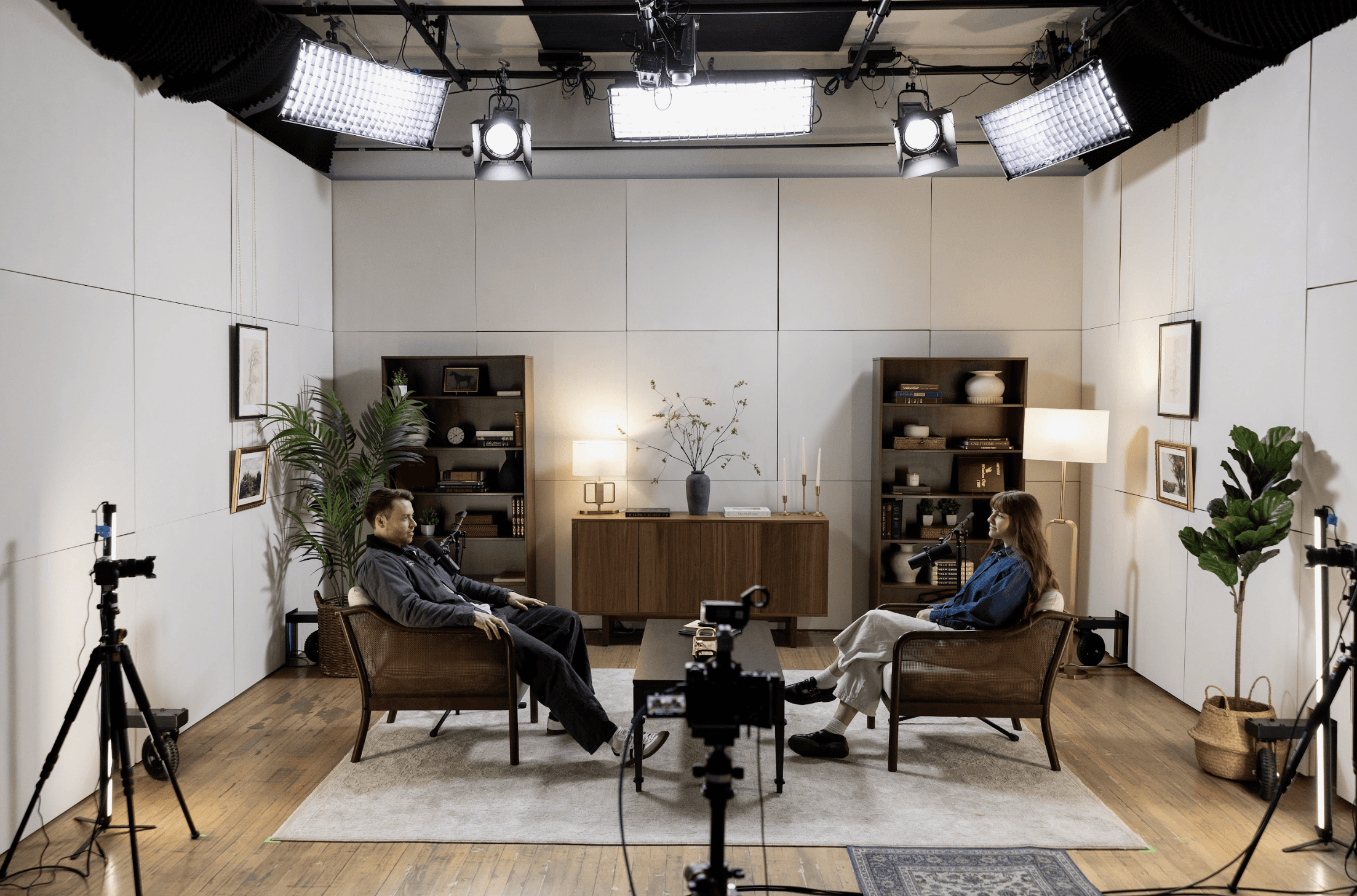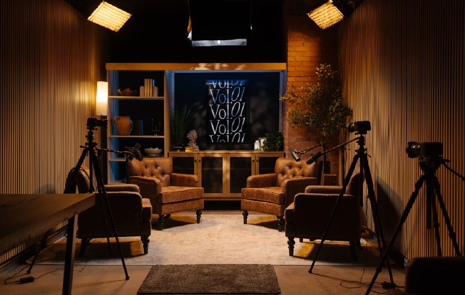 The space is large yet homey, helping guests relax and open up. With pre-rigged lighting and top-tier audio and visual gear, everything is ready so you can focus on the conversation while your set elevates your credibility and leaves a lasting impression.